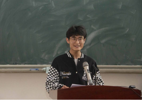 随后,教育学院汉语言文学六班的顾代飞同学代表参训学员发言。他表示要在以后的学习中严格要求自己,以最饱满的热情,最全面的投入,最实际的行动来完成我们的党课学习。